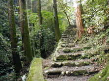 ここが清水とは思えない渓流沿いの道を歩いていくと、行き止まりに
