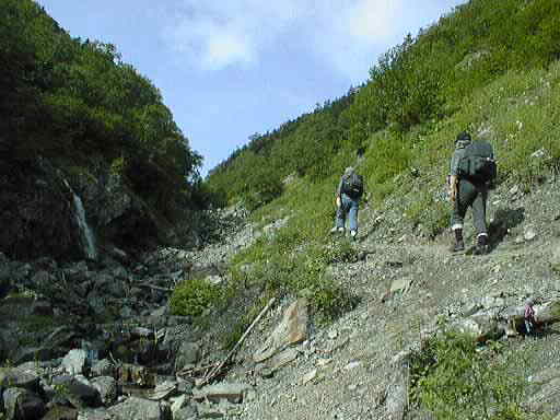 | 渓流沿いでも暑かった | 馬ノ背ヒュッテで水を補給しながら休憩 | 再び山頂を目指して |