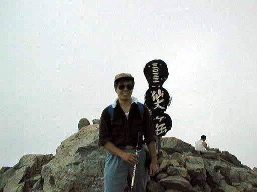 | 仙丈ヶ岳山頂での笑顔 | 仙塩尾根方面の上昇気流 | 山頂の高山植物 チシマキキョウ |