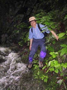 川が増水し、道が無くなり岩伝いに行く