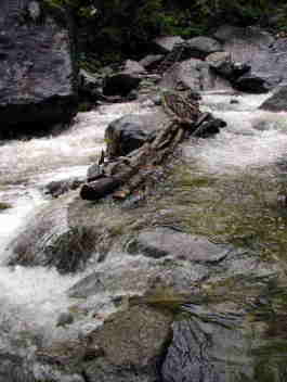 大雨で流された丸木橋