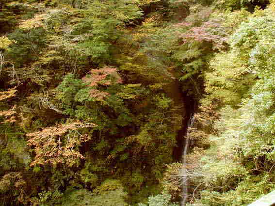 つり橋周辺の滝と紅葉